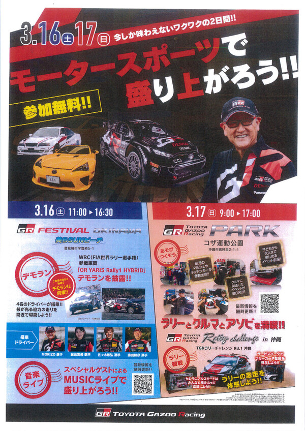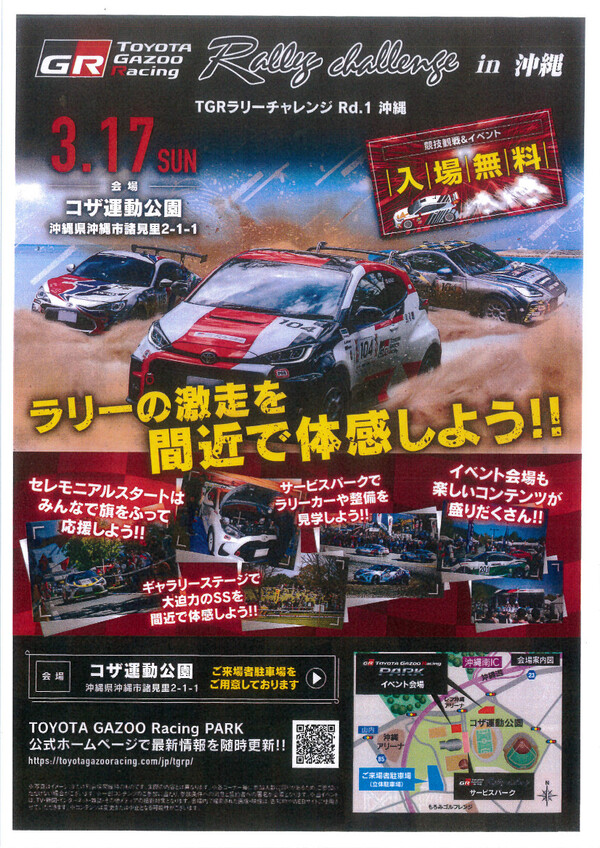 ぜひ3月17日(日)はコザ運動公園をメイン会場に催開される『TOYOTA GAZOO Racingラリーチャレンジ沖縄大会』で冲食商事自動車整備工場へのご声援宜しくお願い致します。
